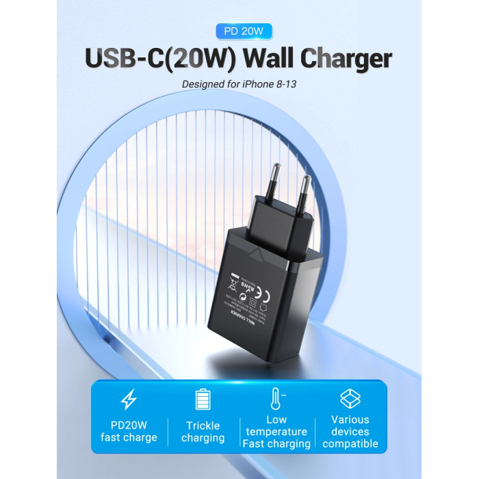Vention 1-port USB-C Wall Charger(20W) EU-Plug Black (FADB0-EU) — універсальний зарядний пристрій, який допоможе зарядити будь-який ваш гаджет. Він сумісний зі смартфонами багатьох популярних брендів, а також підійде для... Читать далее...