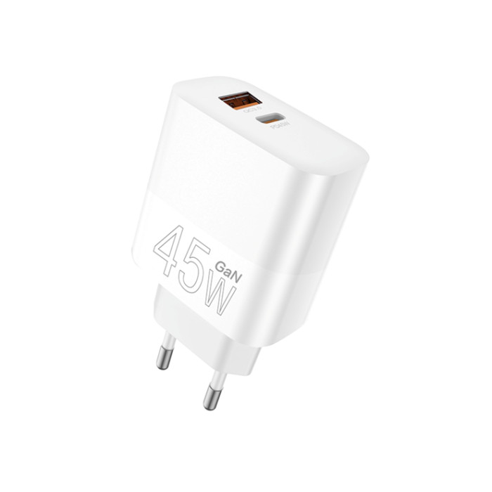 Мережевий зарядний пристрій WUW-C209 45W PD USB-C + USB QC3.0 18W white