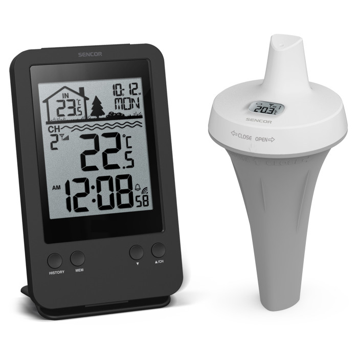 Метеостанція для басейну Sencor, внутр/зовн вимірювання, AAx2+AAx2, темп-ра, чорний