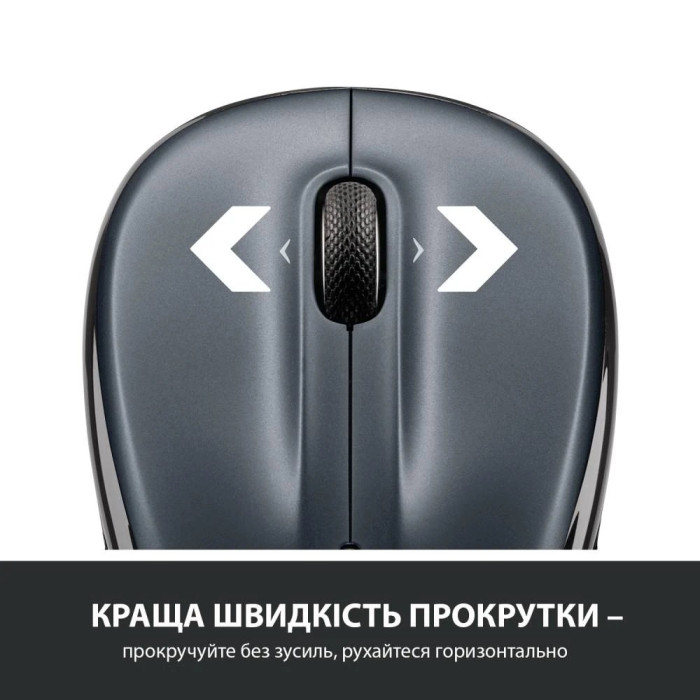 Компактна портативна бездротова миша M325S з мікроточним прокручуванням і коліщатком нахилу забезпечує швидкість і точність. Простий у використанні та сумісний зі всіма основними ОС, він готовий до роботи за лічені секунди.