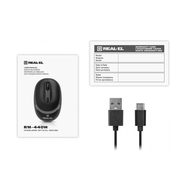 Бездротова оптична мишка REAL-EL RM-440W поєднує в собі енергоефективність, високу точність завдяки оптичному сенсору та зручність завдяки безшумним кнопкам, що ідеально підходять для роботи в тихому середовищі. Ергономічна конструкція забезпечує комфорт при тривалому використанні, а м’яке прогумоване колесо прокручування дозволяє легко здійснювати навігацію.