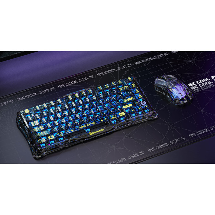 Стильна ігрова миша з прозорим корпусом та RGB-підсвіткою. Оснащена потужним сенсором PAW3395 з роздільною здатністю до 26 000 DPI і частотою опитування 1000 Гц. Підтримує три типи підключення: дротове, Bluetooth і 2.4 ГГц.