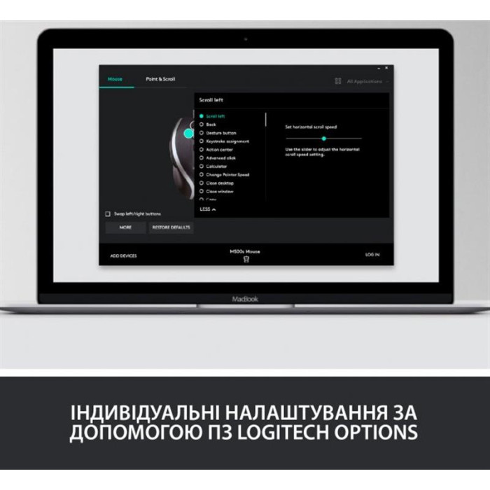 З мишею M500s ваша робота стане ефективною, як ніколи раніше, завдяки функції надшвидкої прокрутки і семи налаштованим кнопкам для швидкого доступу. Повнорозмірний ергономічний корпус миші гарантує комфорт, точність, швидкість і ефективність роботи. Крім того, тепер миша дозволяє регулювати чутливість і працювати з ПЗ Logitech OPTIONS.