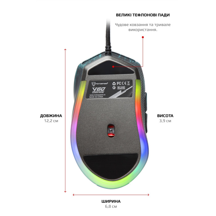 Унікальний та стильний дизайн додасть приємних вражень під час баталій. Неймовірно зручна та потужна миша MOTOSPEED, що надасть перевагу над ворогом.