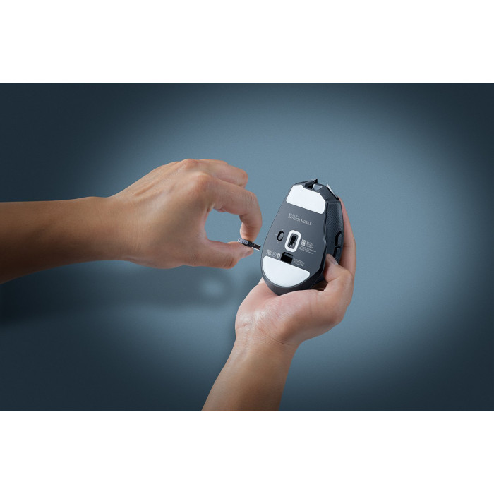 Razer Basilisk Mobile – компактна ергономічна бездротова миша з оптичним сенсором Focus X 18K, що забезпечує точність до 18 000 DPI на різних поверхнях. Колесо HyperScroll підтримує тактильний та вільний режими прокручування для точної роботи та швидкого перегляду. Оптичні перемикачі третього покоління з ресурсом 90 млн натискань та трирежимне підключення (HyperSpeed Wireless, Bluetooth, USB-C) роблять її зручною для подорожей і тривалої автономності до 180 годин у режимі Bluetooth.