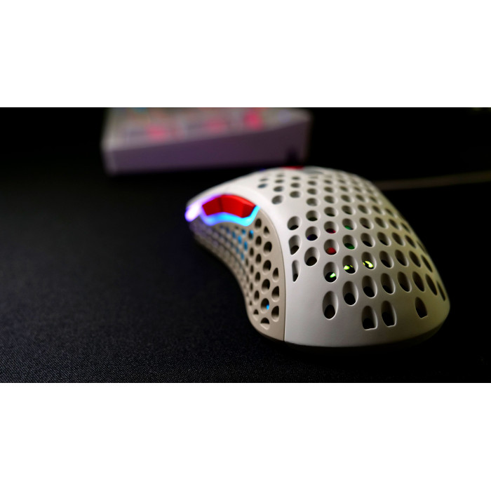 M4 - перша надлегка ігрова миша з ергономічним правостороннім дизайном - унікальна конструкція, що дозволяє важити менше без шкоди для форми і відчуття. Отримавши зворотний зв'язок як від професійних шанувальників, так і від казуальних гравців, ми отримали абсолютно нову форму і розмір.