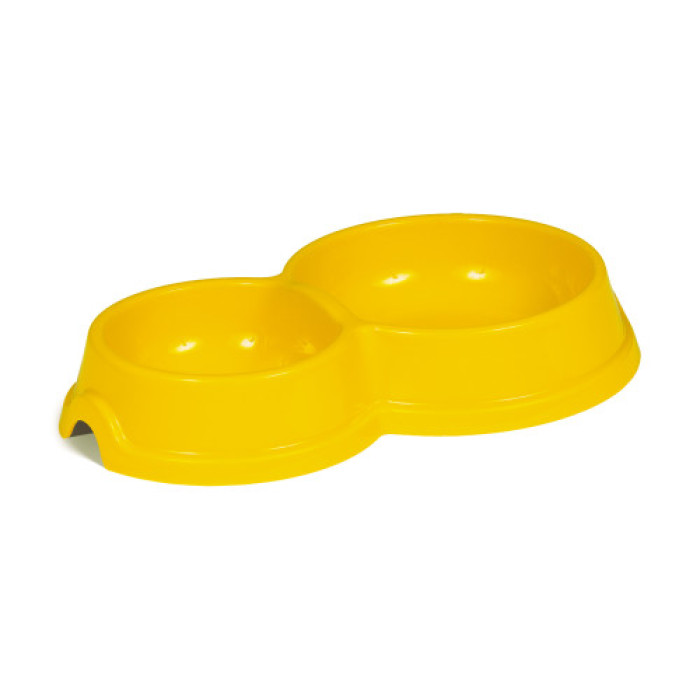 Миска Priroda подвійна №0 для котів, 75 мл/125 мл, жовта