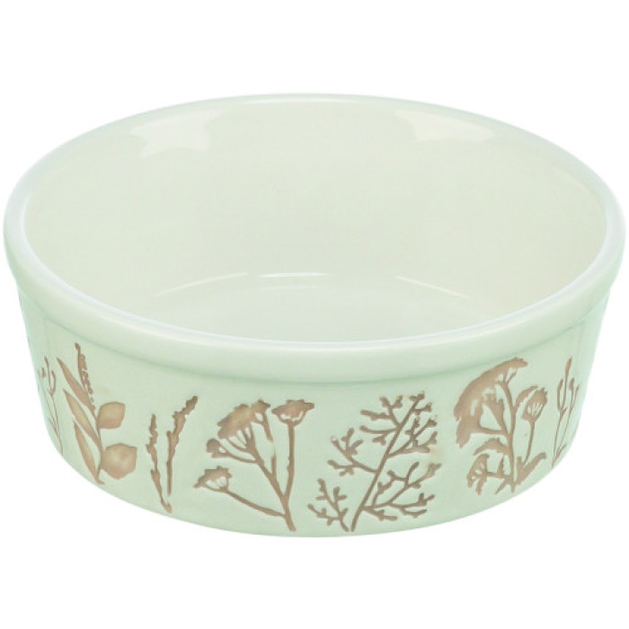Миска Trixie керамічна з рослинним текстурним принтом для собак 0,3 л d 12 см біло-коричнева