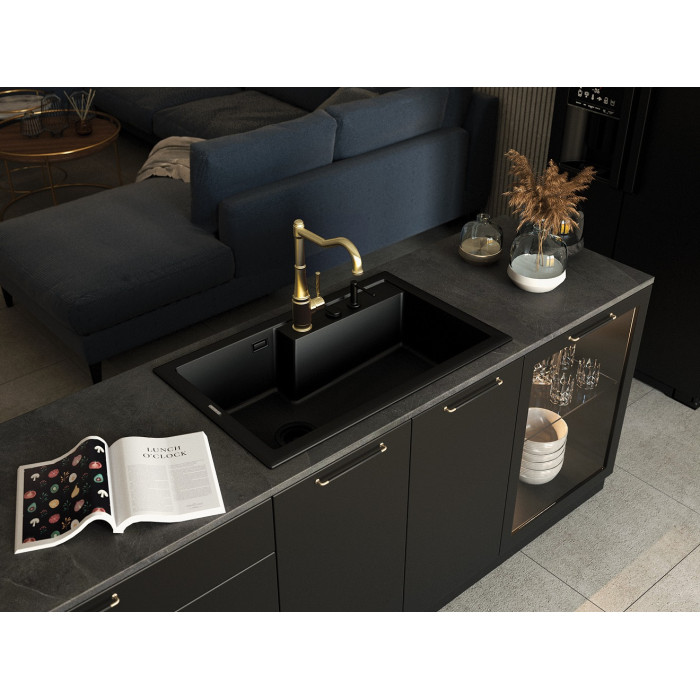 Мийка кухонна Deante Eridan, граніт, прямокутна, без крила, 800х500х214мм, чаша - 1, врізна, чорна