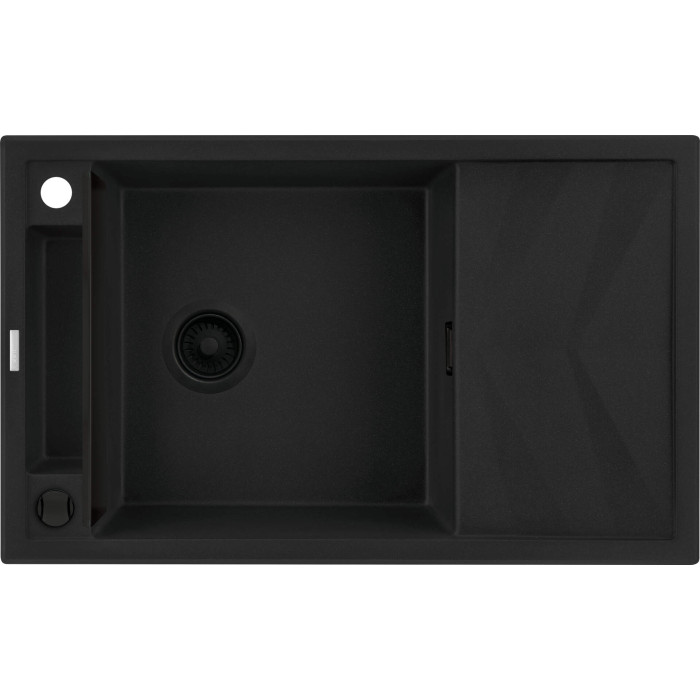 Мийка кухонна Deante Magnetic, граніт, прямокут., з крилом, 820х500х219мм, чаша - 1, накладна, чорний матовий