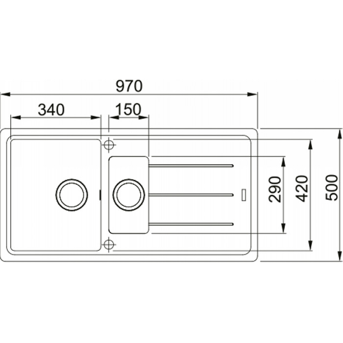 Мийка кухонна Franke Basis фраграніт, прямокут., з крилом, 970х500х200мм, чаша - 2, врізна, онікс