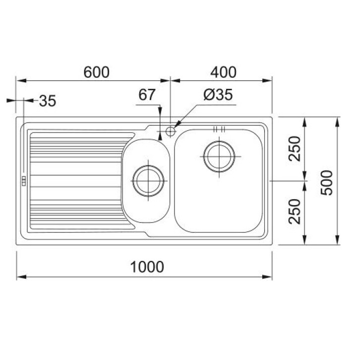 Мийка кухонна Franke Logica, нерж.сталь, прямокутник, з крилом, 1000х500х180мм, чаша - 1,5, врізна, line LLL 651, нерж декор