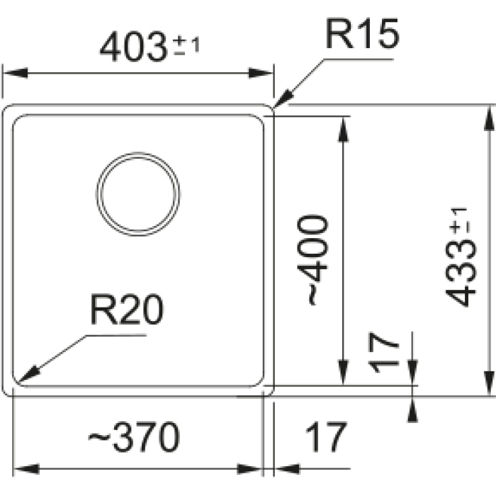 Мийка кухонна Franke Maris, фраграніт, прямокутник, без крила, 403х433х200мм, чаша - 1, монтаж під стільницю, MRG 110-37, чорний матовий