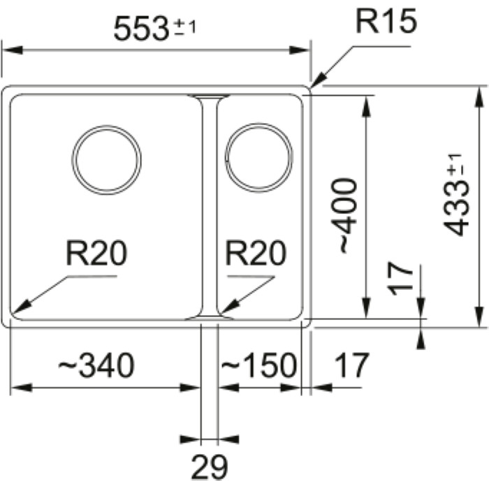 Вбудована мийка Franke з лінійки Maris з великою та маленькою чашею. Виготовлена із Fragranit+, який на 80% складається з натурального граніту. Завдяки використанню дуже дрібних частинок граніту мийка виходить ідеально г... Читать далее...