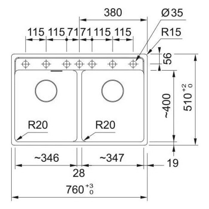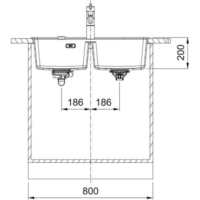 Мийка кухонна Franke Maris, фраграніт, прямокутник, без крила, 760х510х200мм, чаша - 2, врізна, MRG 620 TL, чорний матовий