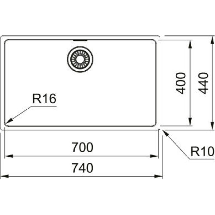 Мийка кухонна Franke Maris, нерж.сталь, прямокутник, без крила, 740х440х180мм, чаша - 1, монтаж під стільницю, MRX 110-70, нерж