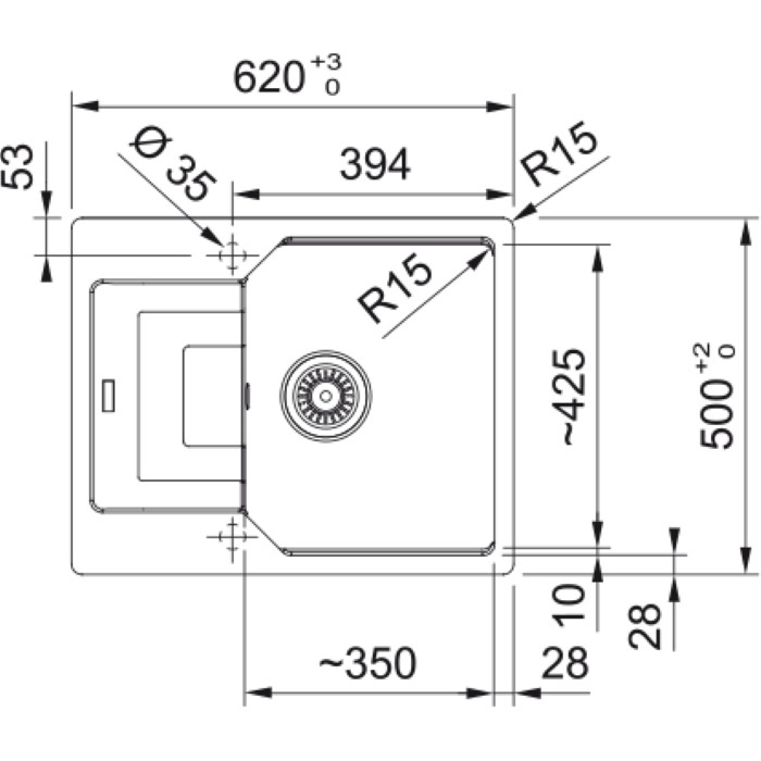 Размеры основной чаши (ДхШхГ)