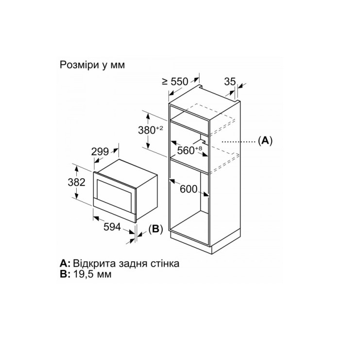 Мікрохвильова піч Bosch вбудовувана, 21л, електр. управл., 900Вт, дисплей, чорний