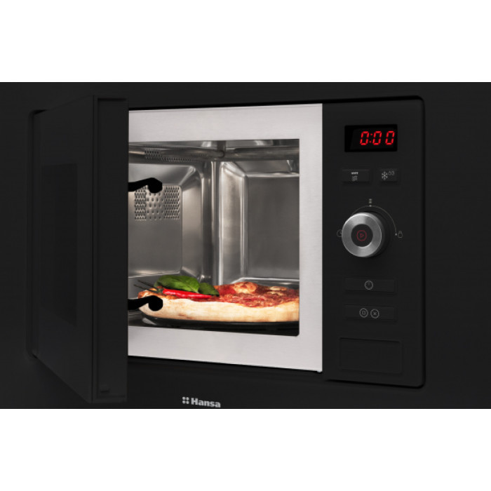 Мікрохвильова піч Hansa вбудовувана, 20л, електр.управл., 800Вт, гриль, дисплей, відкр.кнопкою, чорний