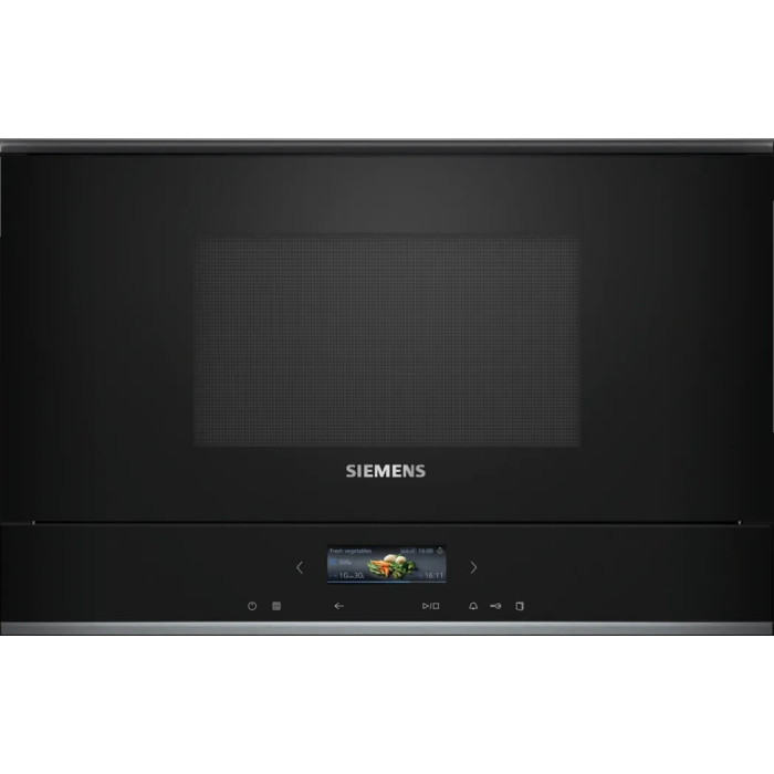 Мікрохвильова піч Siemens вбудована, 21л, електр. керув., 900Вт, гриль, дисплей, чорний