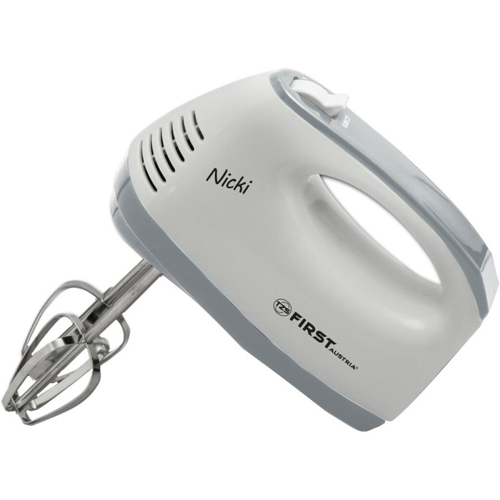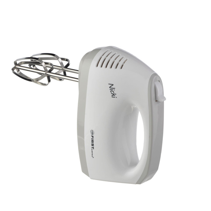 Міксер First FA 5262-5 відноситься до ручного типу. Він портативний і легко піддається маніпуляціям. Порівняно зі стаціонарними міксерами, ручний не прив'язаний до чаші, Ви можете працювати з будь-якою ємністю. Міксер First FA-5262-5 стане незамінним на кухні, щоб швидко та без особливих зусиль розмішати та подрібнити продукти. Працює пристрій від мережі. Для виготовлення основної частини використовується пластик, безпечний для здоров'я організму та високоміцний. Передбачено зручне та ступінчасте регулювання швидкості, всього їх виконано п'ять.