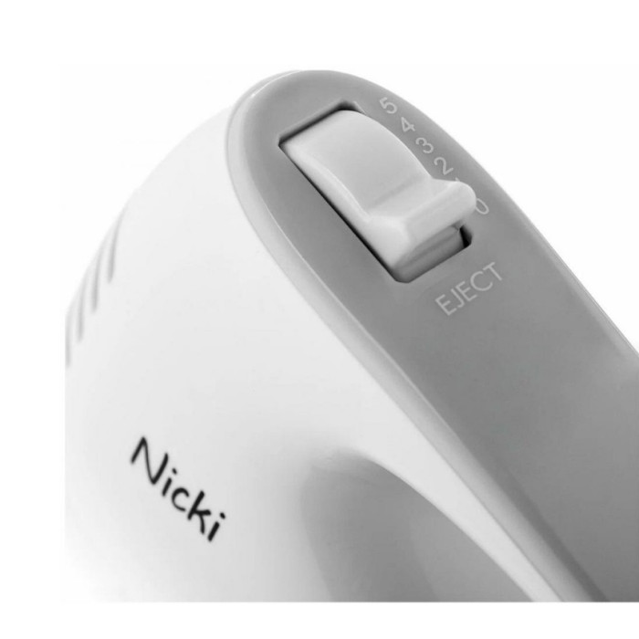 Потужність механізму сягає 150 Вт, що гарантує високу продуктивність. Насадки виготовлені з нержавіючої сталі, яка має високі показники якості. Дизайн міксера стильний та сучасний, поверхня витримана у білому відтінку.