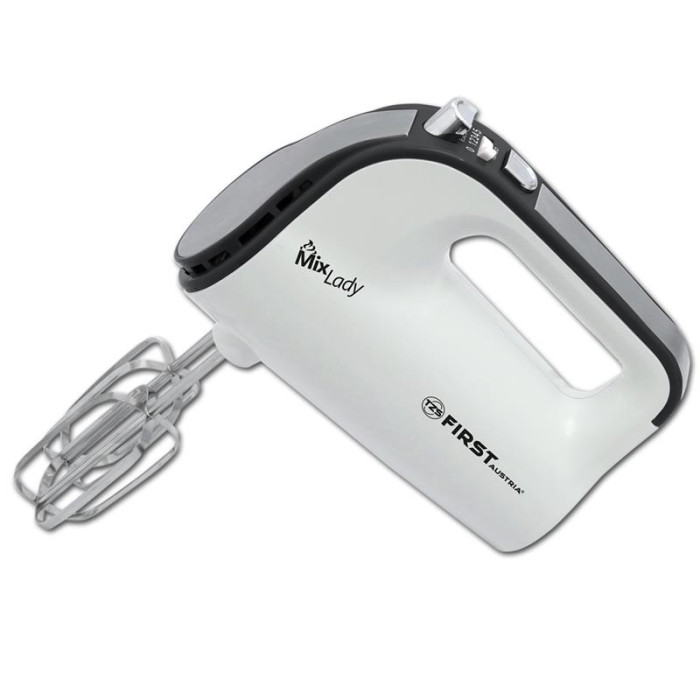 Міксер First FA 5263-1 відноситься до ручного типу. Він портативний і легко піддається маніпуляціям. Порівняно зі стаціонарними міксерами, ручний не прив'язаний до чаші, Ви можете працювати з будь-якою ємністю. Міксер First FA 5263-1 зроблений із пластику білого кольору. В цілому, модель має приємний дизайн.