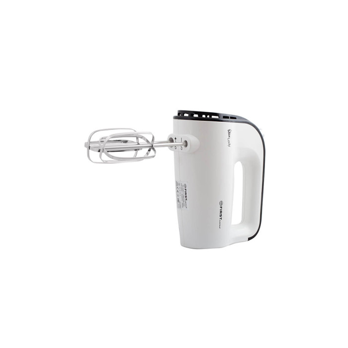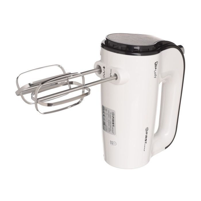 Ергономічна ручка міксера First FA 5263-1 зручно сидить у руці. Біля неї знаходиться перемикач швидкісних режимів, що дозволяє вибрати інтенсивність збивання. Усього є 5 швидкостей. У набір із міксером входить дві пари насадок. Вони встановлюються в отвори нижньої частини корпусу. Для вилучення насадок передбачена кнопка «eject», тому немає жодної необхідності витягувати їх силою і бруднити руки.