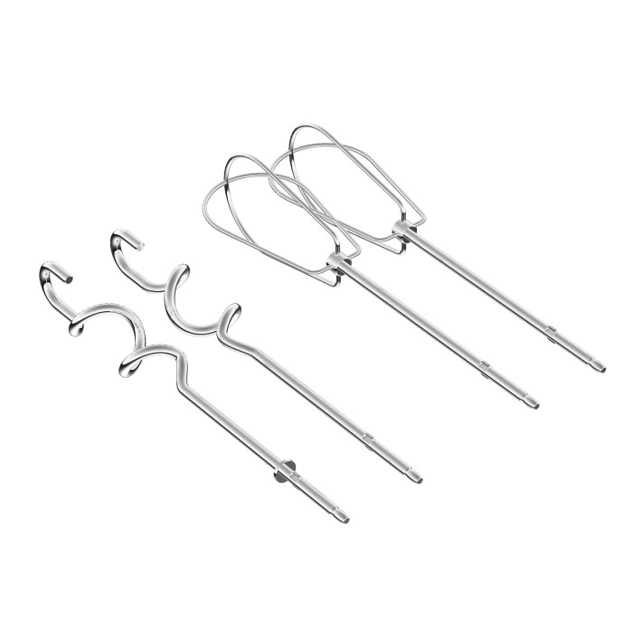 Також у наборі поставки передбачено два гаки для замішування тіста. Такі інструменти дозволять обробити вже щільніші склади, ніж вінчики, тому можна сміливо експериментувати на кулінарній ниві, застосовуючи гаки.