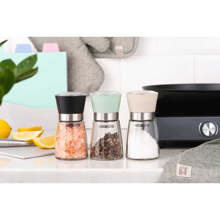Млинок для солі та перцю ARDESTO Gemini, 180мл, скло, пластик, прозорий, чорний