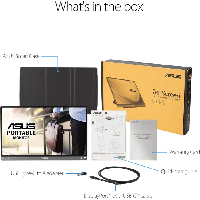 Asus ZenScreen MB16ACE — це портативний 15.6" IPS монітор, створений для тих, хто працює в дорозі або цінує додатковий екран у будь-якому місці. Завдяки єдиному підключенню через USB-C, цей дисплей легко під'єднується до ноутбуків, планшетів і смартфонів, забезпечуючи чітке зображення та миттєве налаштування без зайвих кабелів і адаптерів.