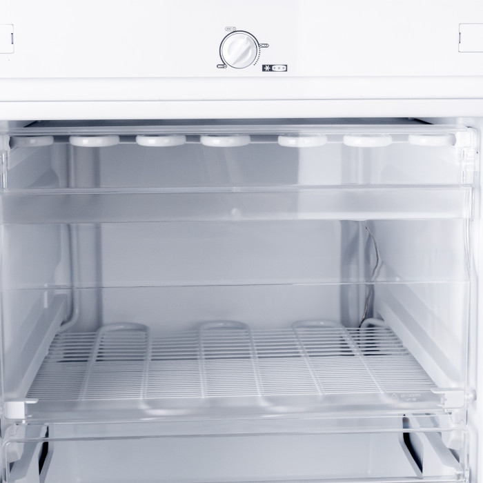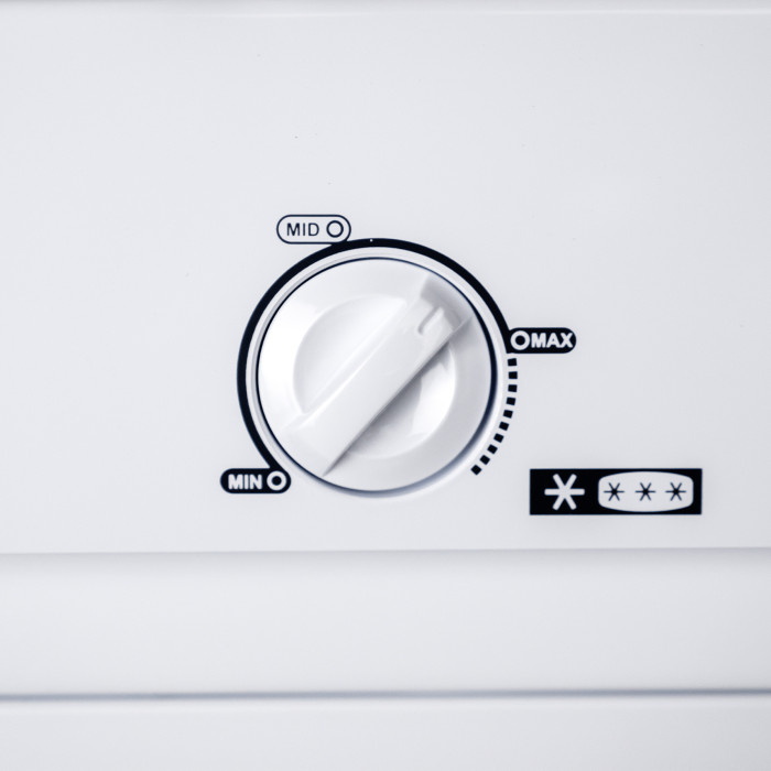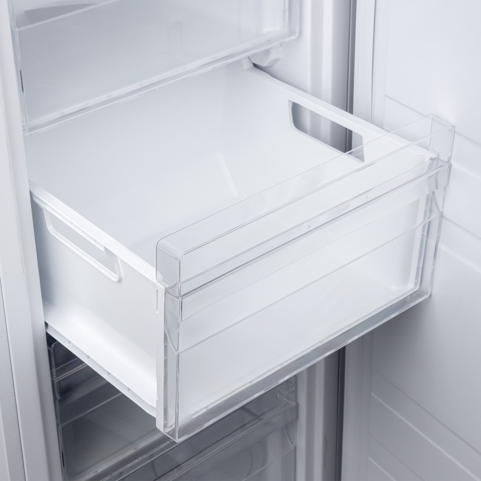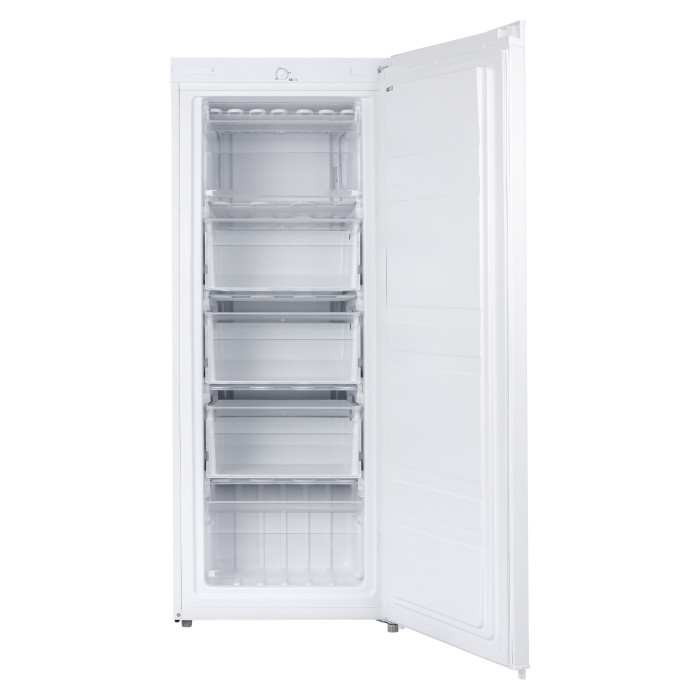 Морозильна камера всередині має 4 пластикові прозорі шухляди, а зверху окрему полицю, що дає змогу розкласти всі заморожені продукти за планом. Загальний об'єм камери - 160 л. Статична система охолодження збереже працездатність на тривалий час у температурному режимі від -14 до -22 градусів. Заморозити 7.2 кг нових "теплих" продуктів за добу зможе легко. Конденсатор захований у піні. Морозилка не потребує додаткових робочих умов - євровилка і 160 см дроту дають можливість під'єднати до стандартної напруги в 220 В.