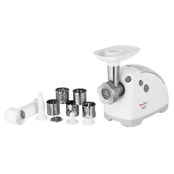 Мясорубка Moulinex, 1400Вт, 1.7кг/мин, 2 решетки, насадка для колбас, пластик, белый (ME626132)