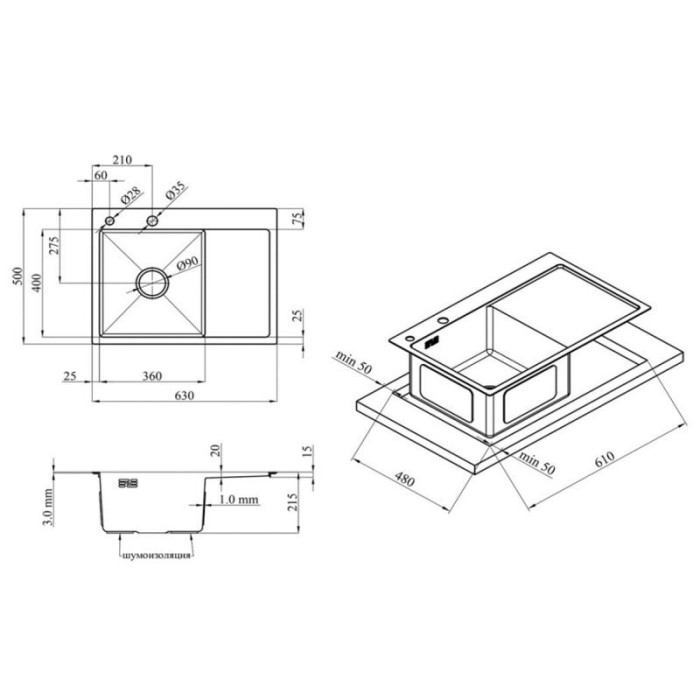 Нами приложены все усилия для подачи точной и правдивой информации в описании мойки. Тип и основные размеры соответствуют указанным на чертеже, но, ввиду особенностей производства и материалов, размеры могут варьироваться в пределах от -3 до -7 мм, поэтому вырез в столешнице необходимо производить исключительно при наличии мойки. Производитель оставляет за собой право вносить изменения в конструкцию изделий и комплектацию, которые не ухудшают качество, без предварительного уведомления.