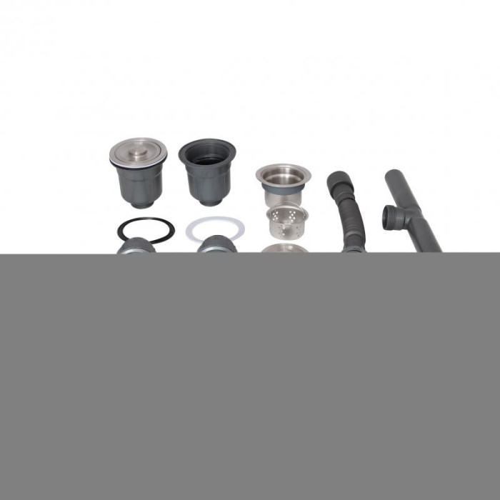 Мойка, дозатор, сифон, слив/перелив, корзинчатый вентиль, крепежи.