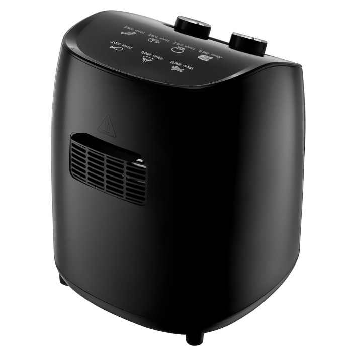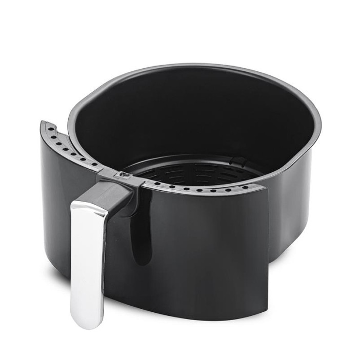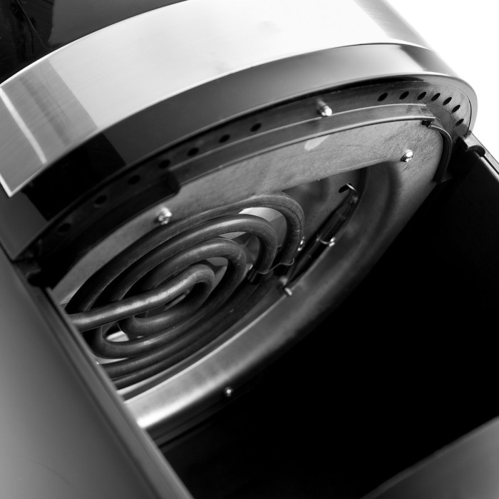 Потужна фритюрниця працює дуже швидко зі свіжими та замороженими продуктами без додавання зайвого жиру. Тут продукти готуються лише на повітряному потоці, температура якого регулюється в діапазоні від 80°С до 200°С. Дуже важливо правильно налаштувати температуру, оскільки саме коректна температура дозволить досягти ефекту хрусткої скоринки у блюді без додавання олії чи жиру. Потужність пристрою становить 1000 Вт, а об'єм чаші для приготування - 3.2 літра.