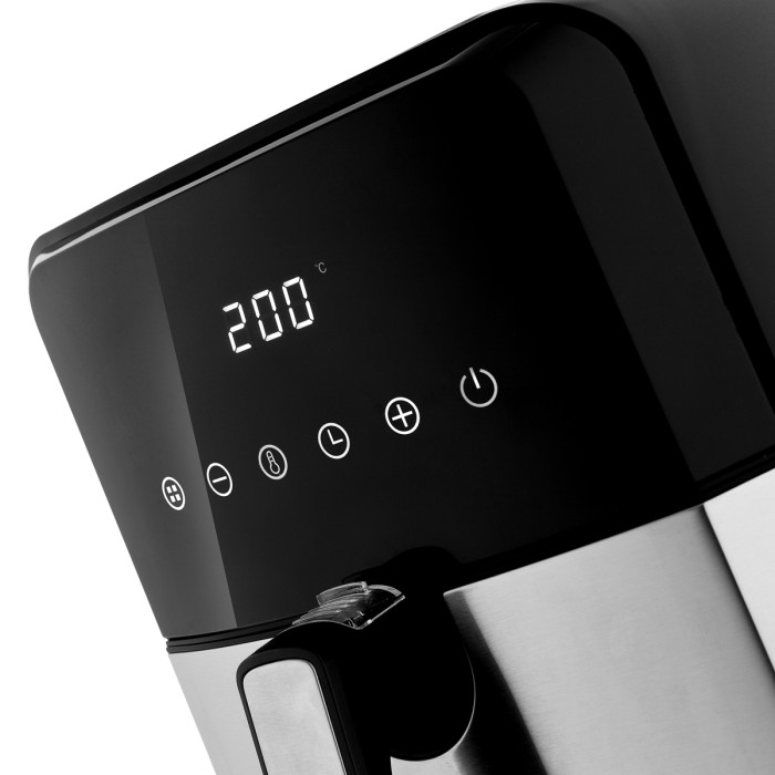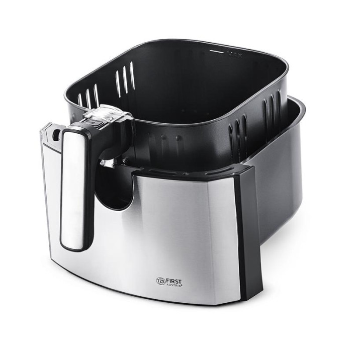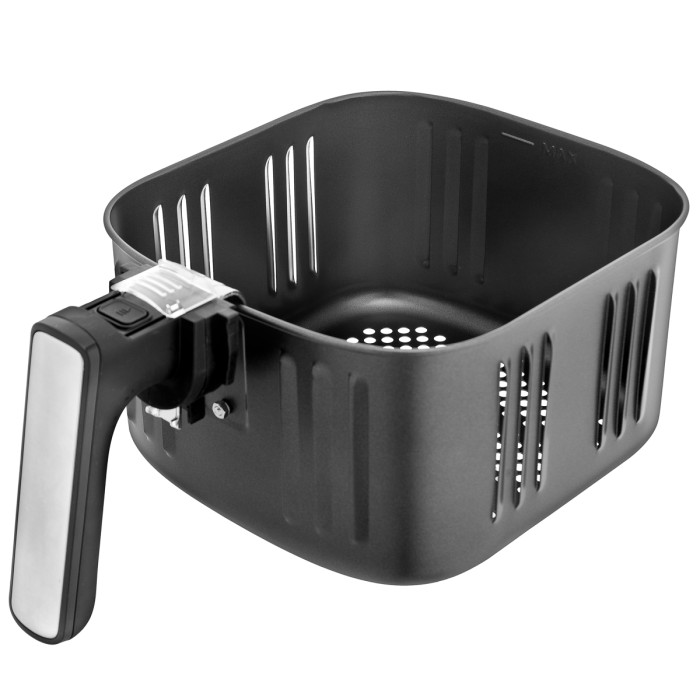 Ідеально золотаво-коричнева скоринка. Експлуатація проста та безпечна завдяки високоякісним нагрівальним елементам з нержавіючої сталі, відстроченню запуску (0-24 години), таймеру на 60 хвилин з автоматичним вимкненням та термоізольованому пластиковому корпусу. Кошик для смаження з антипригарним покриттям легко мити в посудомийній машині.