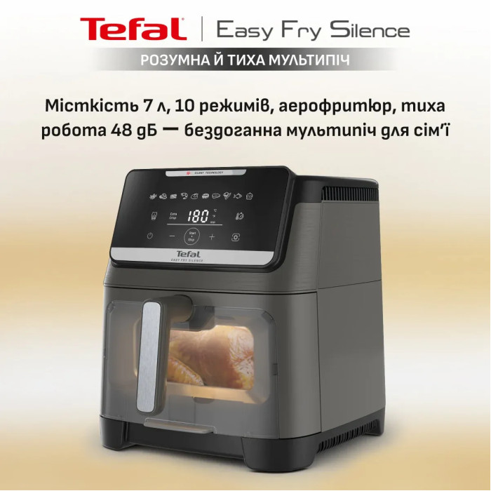 Мультипіч Tefal Easy Fry Silence XXL, 1800Вт, чаша-7, сенсорне керув., 10 програм, з віконцем, пластик, темно-сірий