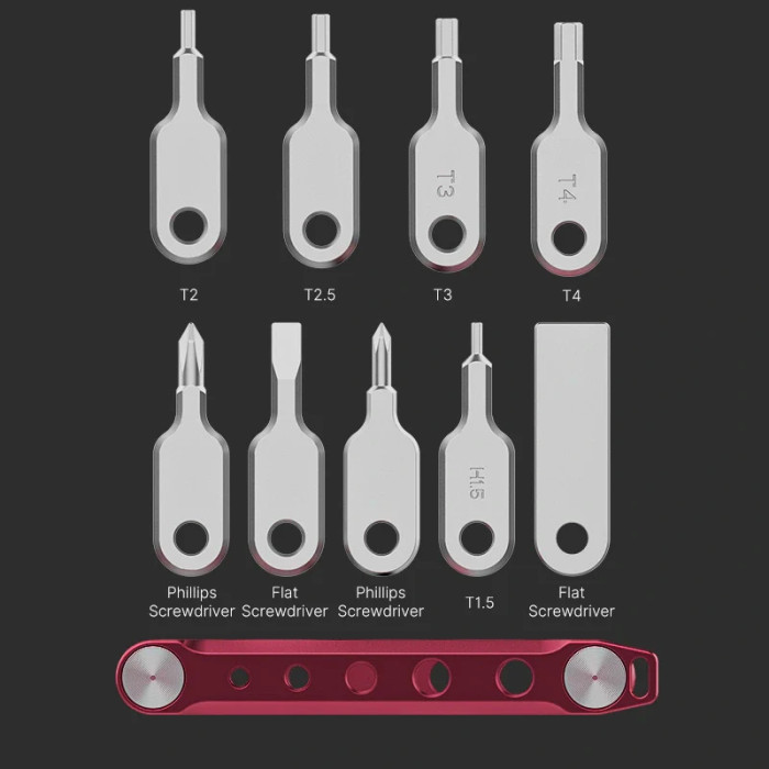 Набір інструментів для викруток 9 в 1: включає 2 плоскі викрутки, 1,5, 2, 2,5, 3, 4 мм та 2 хрестові викрутки.Додаткові різьбові отвори: збоку є додаткові різьбові отвори M3, M4, M5, 1/4 для зберігання гвинтів.Ціліснометалева конструкція: гайкові ключі та викрутки виготовлені з міцної нержавіючої сталі, а бічні пластини виготовлені з міцного алюмінієвого сплаву.Легко носити: він компактний і легко носити з собою, запобігаючи втраті крихітних гайкових ключів і викруток.