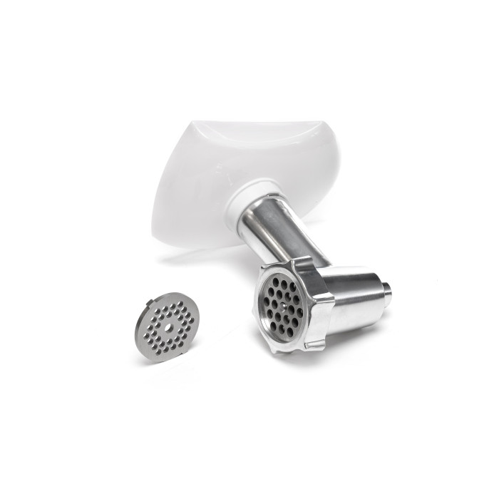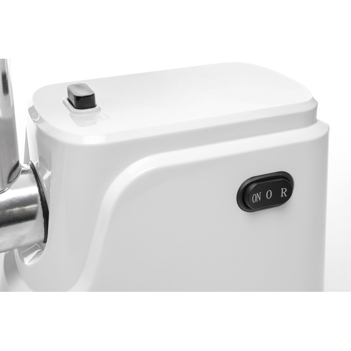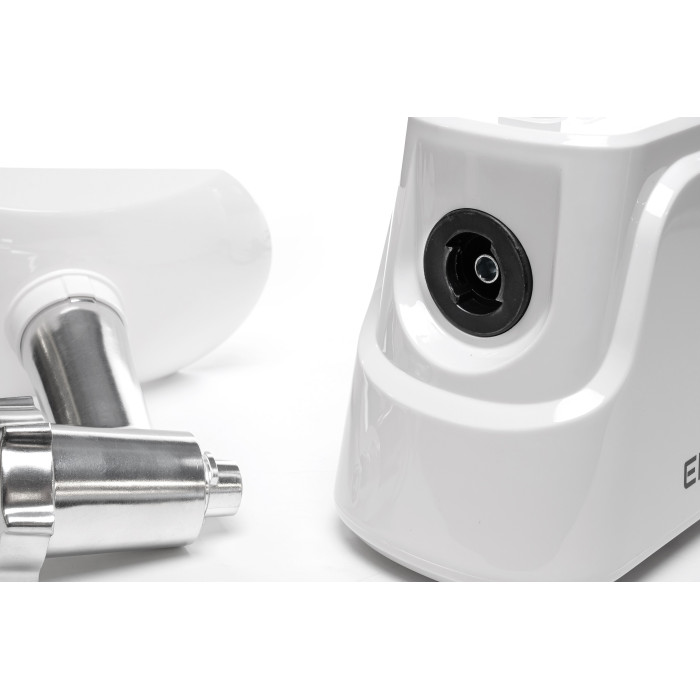 М'ясорубка EISEN EMG-061W поставляється з різноманітними насадками для різних типів приготування. В комплект входять насадки для ковбас та кеббе, що дозволяють готувати різноманітні страви вдома. Також до комплекту входять два диски для фаршу з отворами 5 мм та 7 мм для різного ступеня подрібнення м'яса. Пластиковий штовхач для м'яса забезпечує безпечне та зручне подавання м'яса до шнекового блоку.