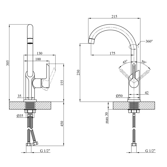 Высота излива, мм
