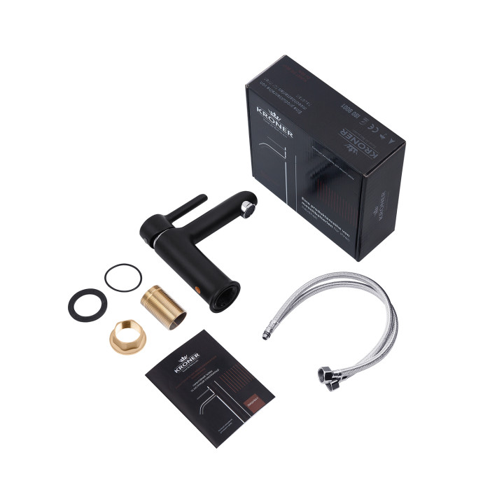 Змішувач, лійка з кронштейном для верхнього душу, лійка з кронштейном для ручного душу, душовий шланг, душова стійка, кріплення, фум стрічка. \ Змішувач, гнучка підводка, кріплення, інструкція.