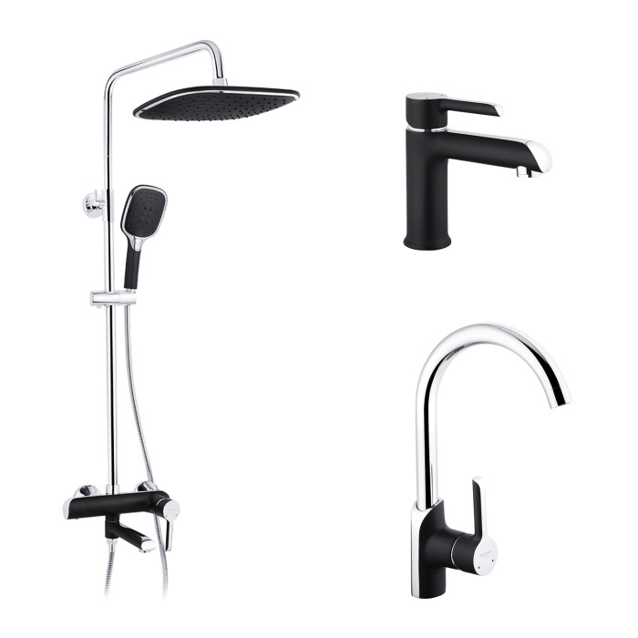 Набор 3 в 1 душова система Kroner Essen-SCH063 + змішувач Essen-SCH030 + змішувач Essen-SCH010