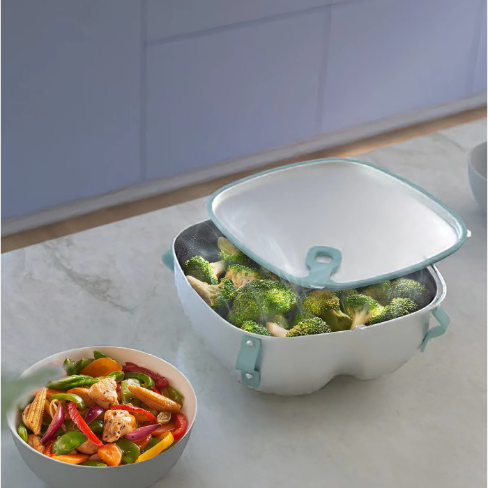 можна мити в посудомийній машині, Вок-сковорода для обсмажування та пасерування, Функція пароварки з використанням спеціальної кришки, Система «підкидання без розсипання»