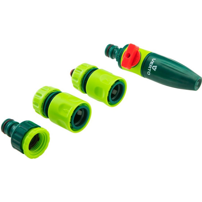 Набір для поливу Verto 1/2", зрошувач ручний прямий, 2 конектори для шланга, конектор для крана