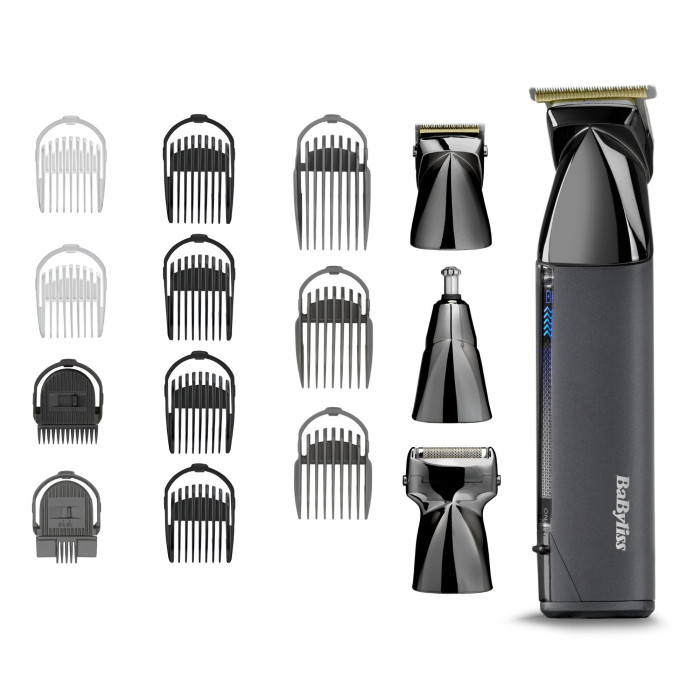 Набір для стрижки Babyliss Super-X Metal Black Edition, для голови, вусів, бороди,носа і тіла, акум., насадок-15, сумка для зберігання, підставка, сталь, чорний