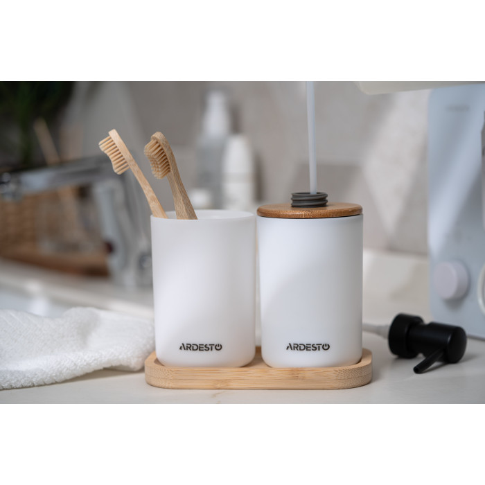 Набір для ванної кімнати ARDESTO Minimalism 360мл, 3 предмети, поліпропілен, бамбук, білий