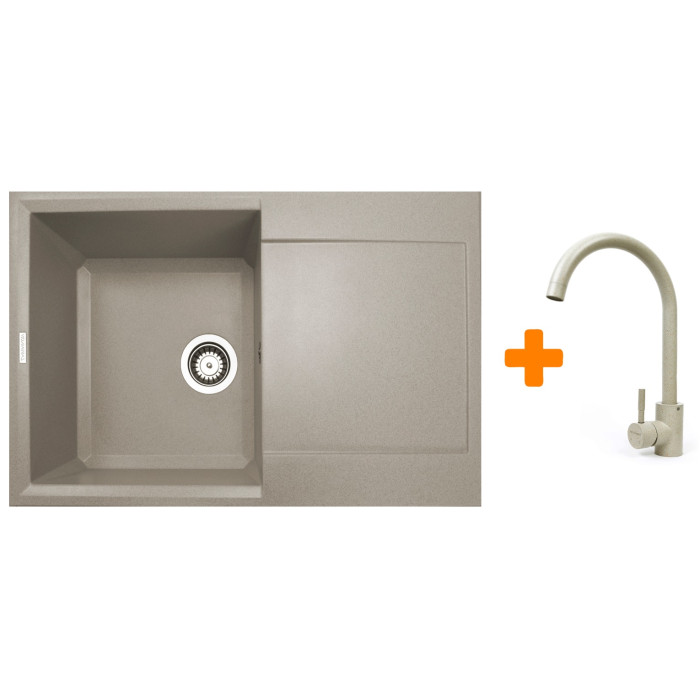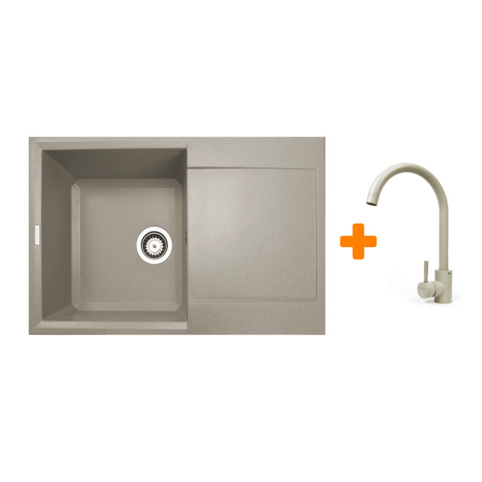 Набір кухонний Adamant Horizon, штучний камінь, прямокут., з крилом, 780х495х230мм, чаша - 1, врізна, Avena + змішувач