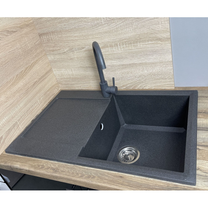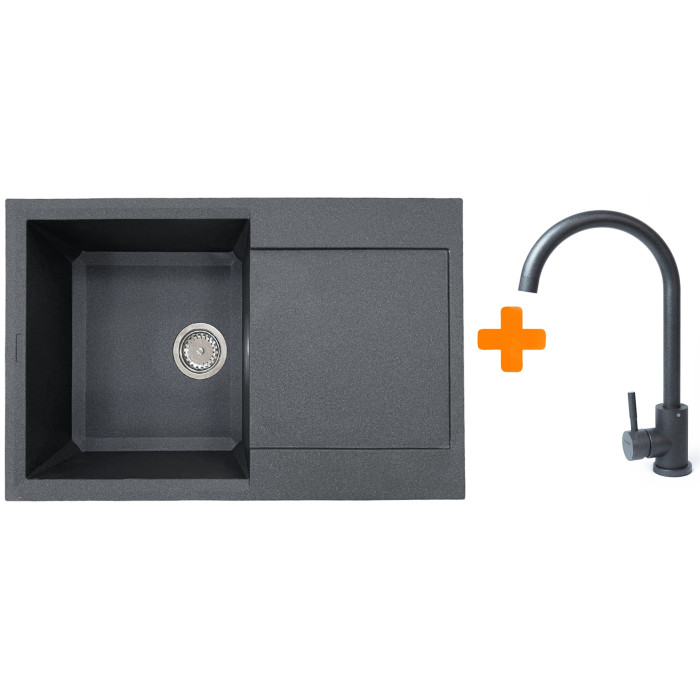 Набір кухонний Adamant Horizon, штучний камінь, прямокут., з крилом, 780х495х230мм, чаша - 1, врізна, графіт + змішувач