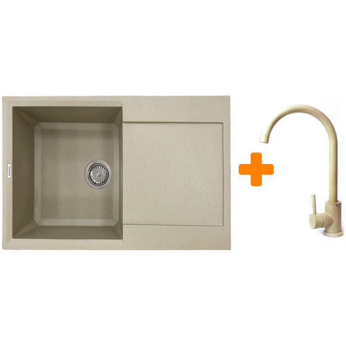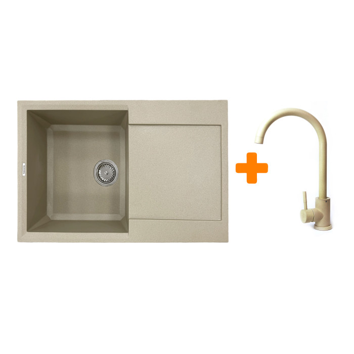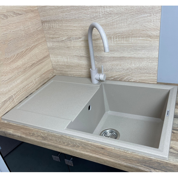 Набір кухонний Adamant Horizon, штучний камінь, прямокут., з крилом, 780х495х230мм, чаша - 1, врізна, Сахара + змішувач